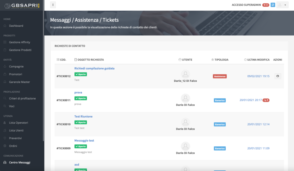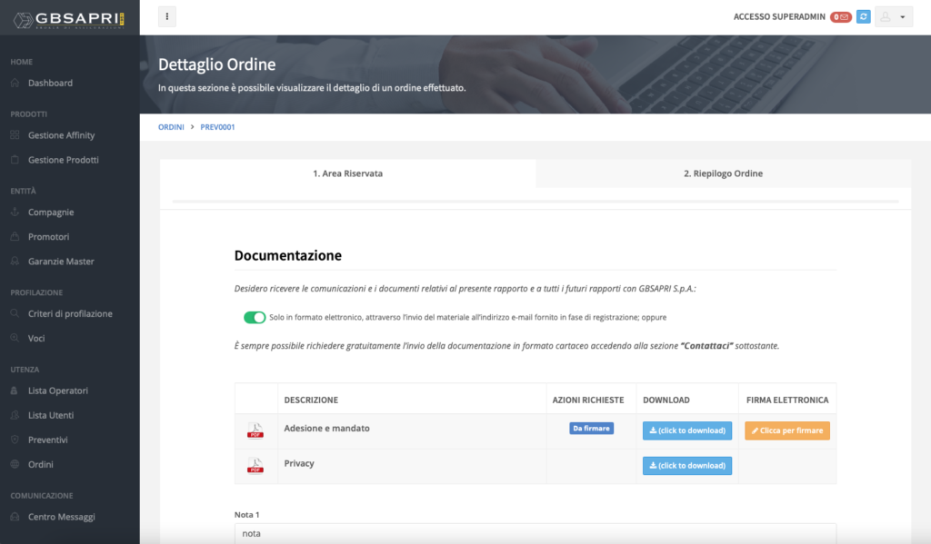 Gestione avanzata per amministratori e utenti con preventivi personalizzati