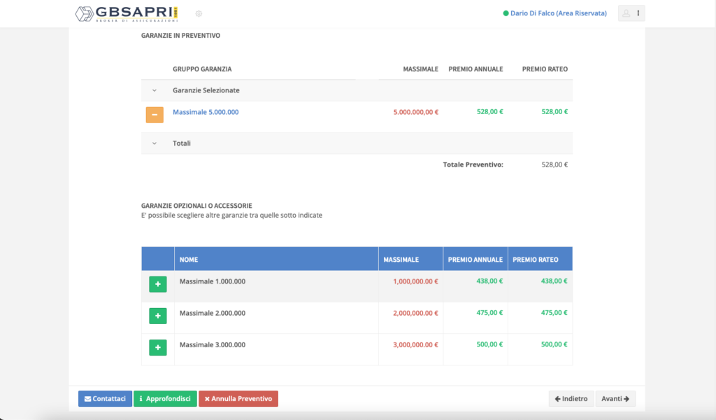 La Intranet ha la forma di un Sito Web e offre la possibilità attraverso una login, di acquistare prodotti assicurativi sulla base di una utenza profilata mediante regole ben dinamiche e predefinite.