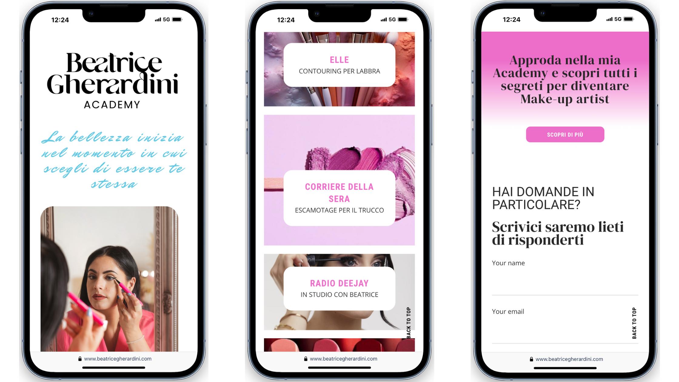 Il sito web dell’Academy di Beatrice Gherardini è stato progettato con un focus particolare sull’estetica e sulla navigazione intuitiva.