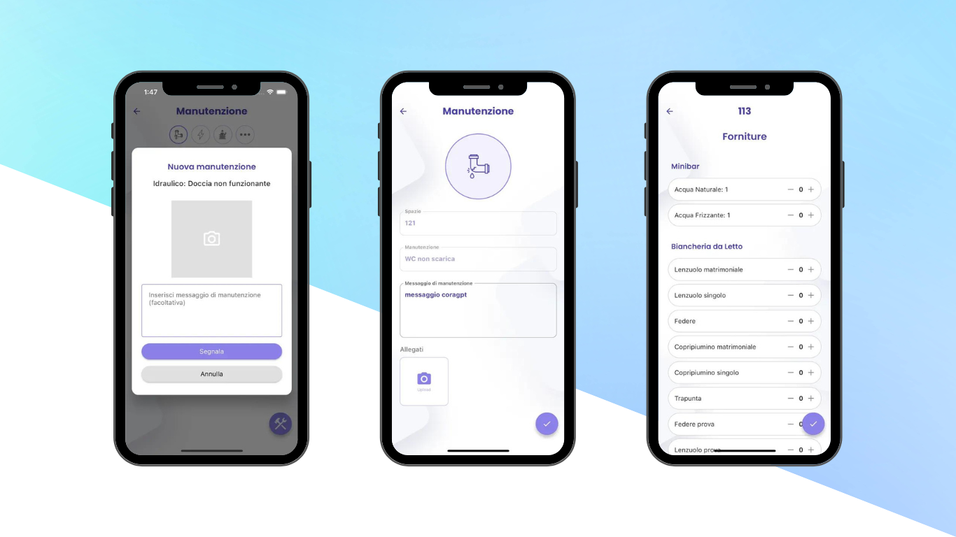 Ricevi segnalazioni immediate di Manutenzioni e Lost & Found, garantendo un servizio rapido e impeccabile. Migliora la comunicazione interna, garantisci un’esperienza di soggiorno memorabile ai tuoi ospiti e fidelizza la tua clientela.