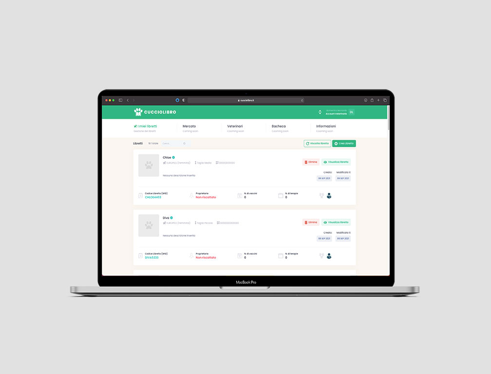 Cucciolibro è il primo e-Wallet veterinario interamente in Cloud, si pone l'obiettivo di stravolgere l'utilizzo dell'attuale libretto sanitario cartaceo, rendendolo totalmente digitale. Il libretto veterinario digitale permette al veterinario e al pet-owner uno scambio bilaterale real-time di informazioni relative all'animale nell'ambito della sua storia clinica e non solo.