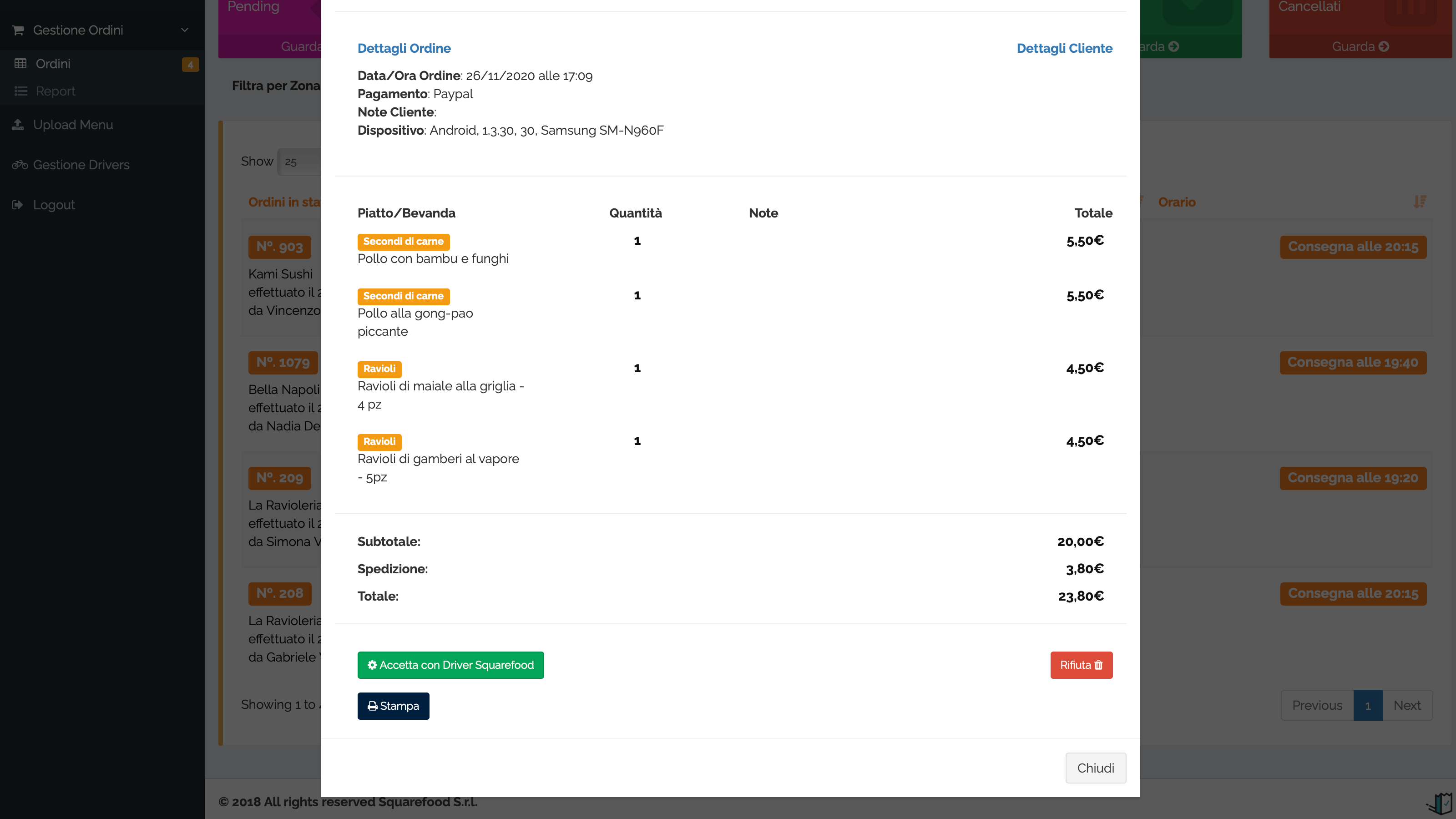 La sfida raccolta da Shadapps è stata la realizzazione di tre applicazioni, rispettivamente per le piattaforme iOS e Android native e Web che permettessero agli utenti di gestire e creare ordinazioni ovvero di un pannello di gestione degli ordini Web responsive.