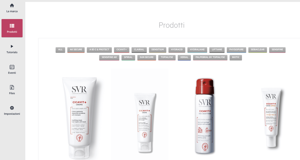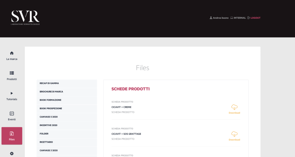 - Upload Files: possibilità di caricare brochure, leaflet, dec, fiches e altro materiale in pdf.